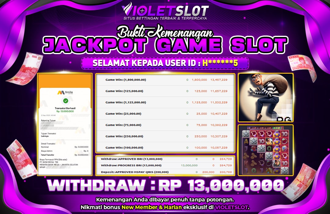 Selamat Kepada Member UNGUTOTO H******5 Telah Jackpot Di WILD HEIST CASHOUT