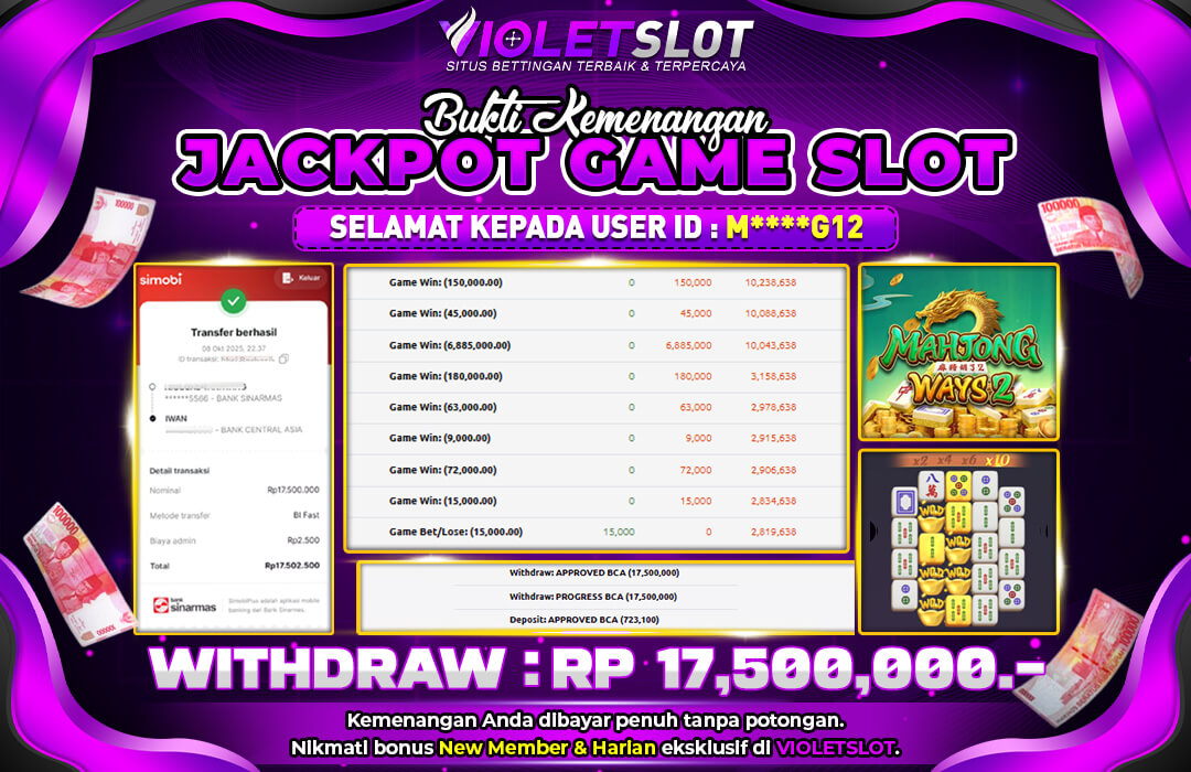 Selamat Kepada Member UNGUTOTO M⭑⭑***⭑G12 Telah Jackpot Di MAHJONG WAYS 2