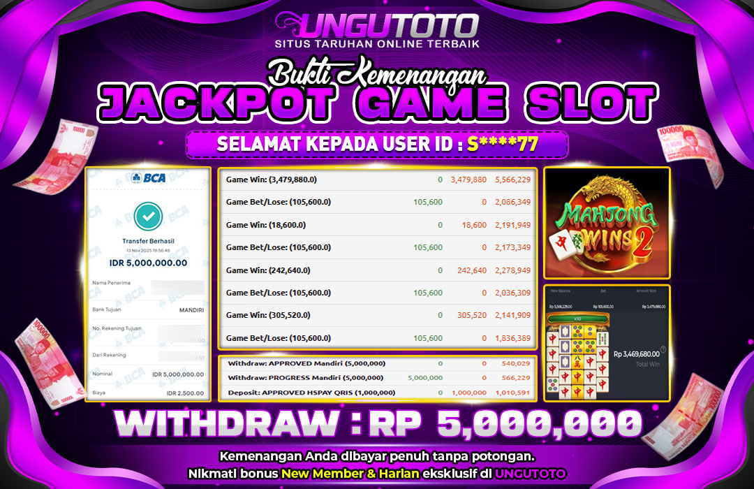 Bergabunglah dengan UNGUTOTO hanya dengan deposit minimal 5.000 rupiah. Kami menyediakan berbagai metode pembayaran seperti transfer bank, e-wallet, dan QRIS, sehingga Anda bisa melakukan transaksi dengan mudah. Proses penarikan juga sangat cepat, dengan minimal withdraw hanya 50.000 rupiah, tanpa biaya tambahan.