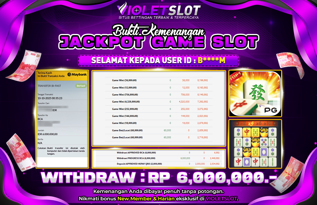 Selamat Kepada Member UNGUTOTO B*******U Telah Jackpot Di MAHJONG WAYS