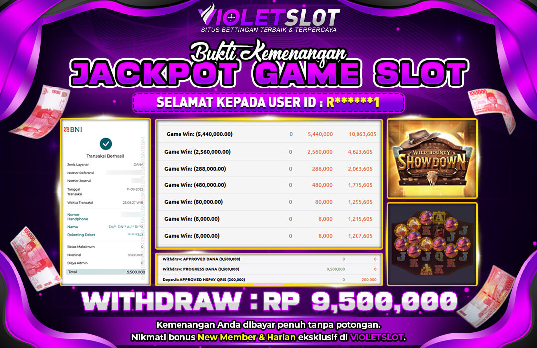 Selamat Kepada Member UNGUTOTO R****1 Telah Jackpot Di WILD BOUNTY SHOWDOWN