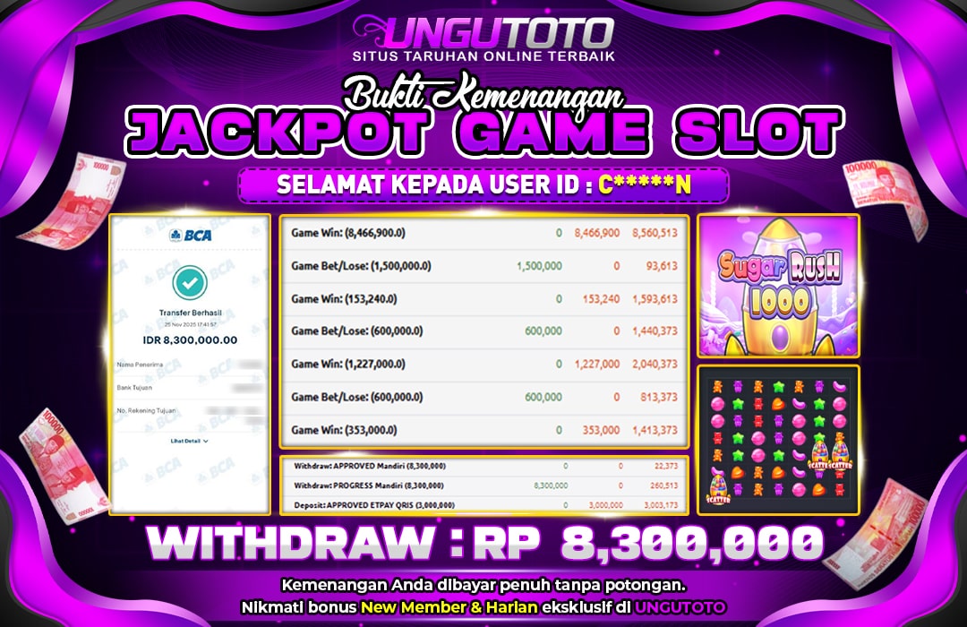 Selamat Kepada Member UNGUTOTO C*****N Telah Jackpot Di SUGAR RUSH 1000