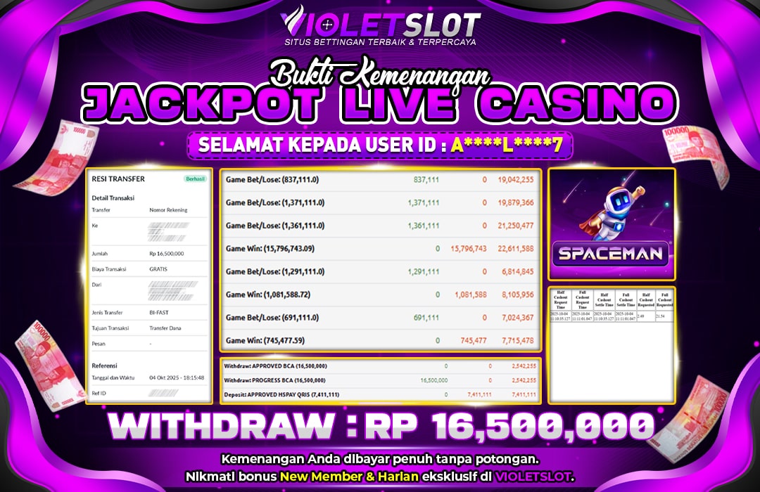 Selamat Kepada Member UNGUTOTO A*********7 Telah Jackpot Di SPACEMAN
