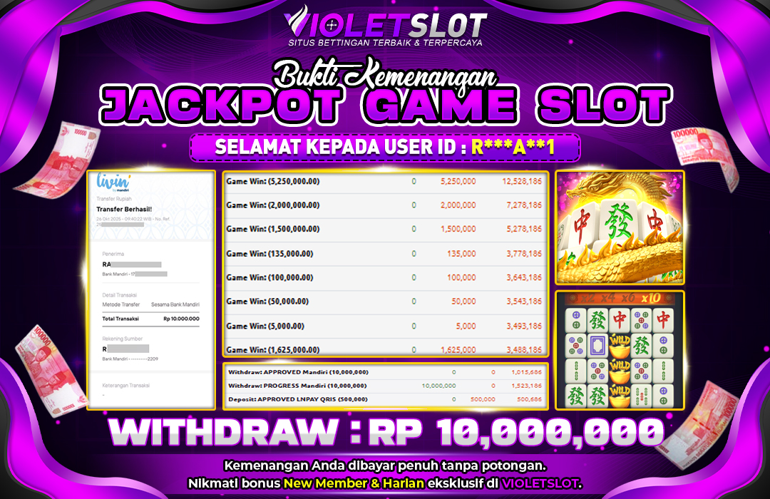 Selamat Kepada Member UNGUTOTO R******1 Telah Jackpot Di GAME SLOT MAHJONG WAYS