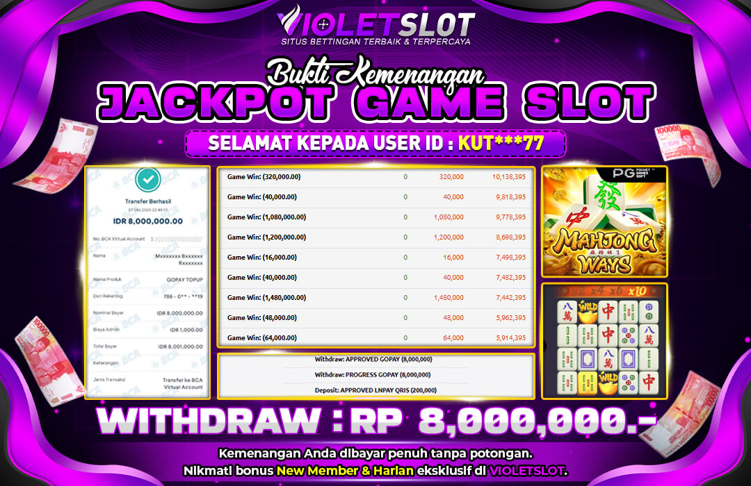 Selamat Kepada Member UNGUTOTO KUT⭑***⭑77 Telah Jackpot Di MAHJONG WAYS