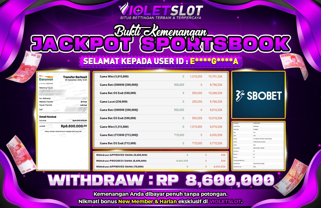 Selamat Kepada Member UNGUTOTO E*********A Telah Jackpot Di SBOBET