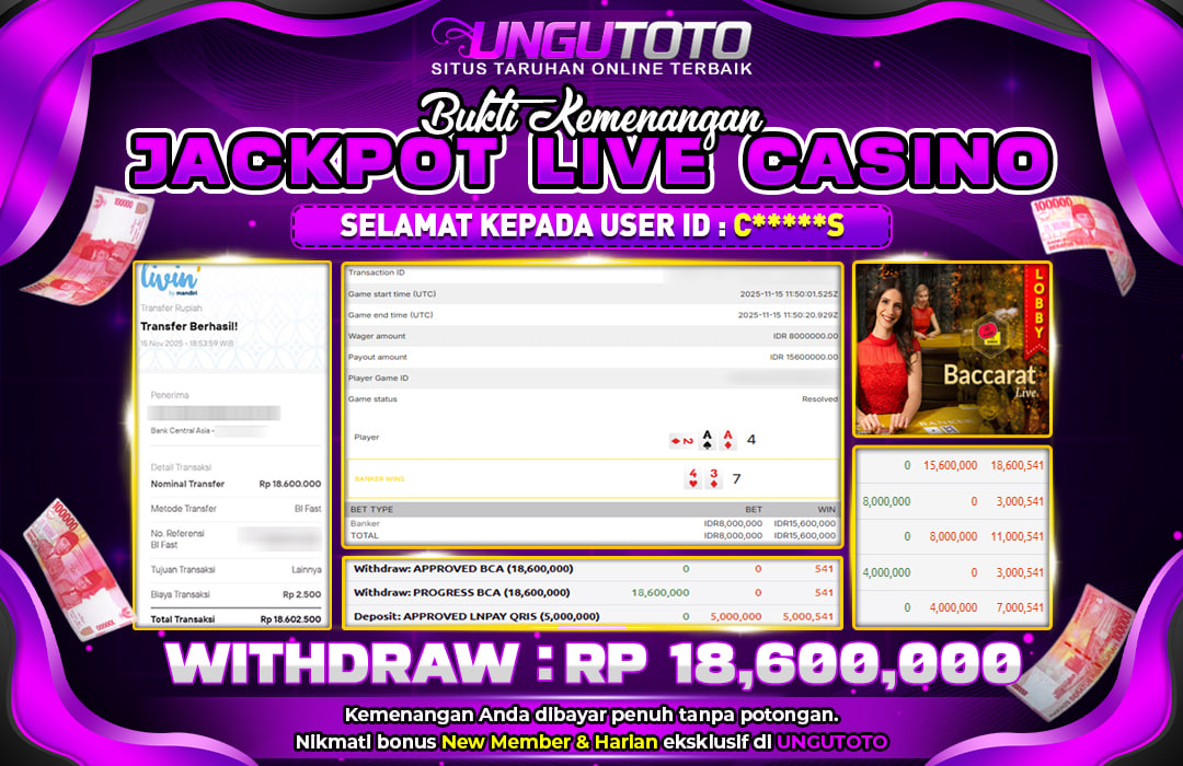 Selamat Kepada Member UNGUTOTO C⭑⭑�***��⭑S Telah Jackpot Di BACCARAT