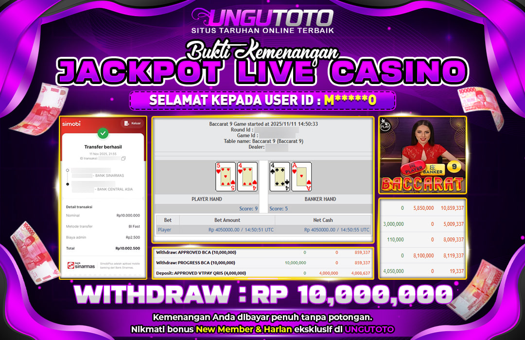 Bergabunglah dengan UNGUTOTO hanya dengan deposit minimal 5.000 rupiah. Kami menyediakan berbagai metode pembayaran seperti transfer bank, e-wallet, dan QRIS, sehingga Anda bisa melakukan transaksi dengan mudah. Proses penarikan juga sangat cepat, dengan minimal withdraw hanya 50.000 rupiah, tanpa biaya tambahan.