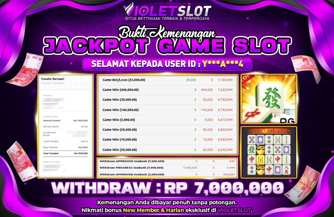 🎉 Selamat untuk USER ID: A⭑⭑⭑⭑⭑⭑⭑T yang sukses membawa pulang Rp.Rp.7.000.000 dari permainan MAHJONG WAYS 2! 💸