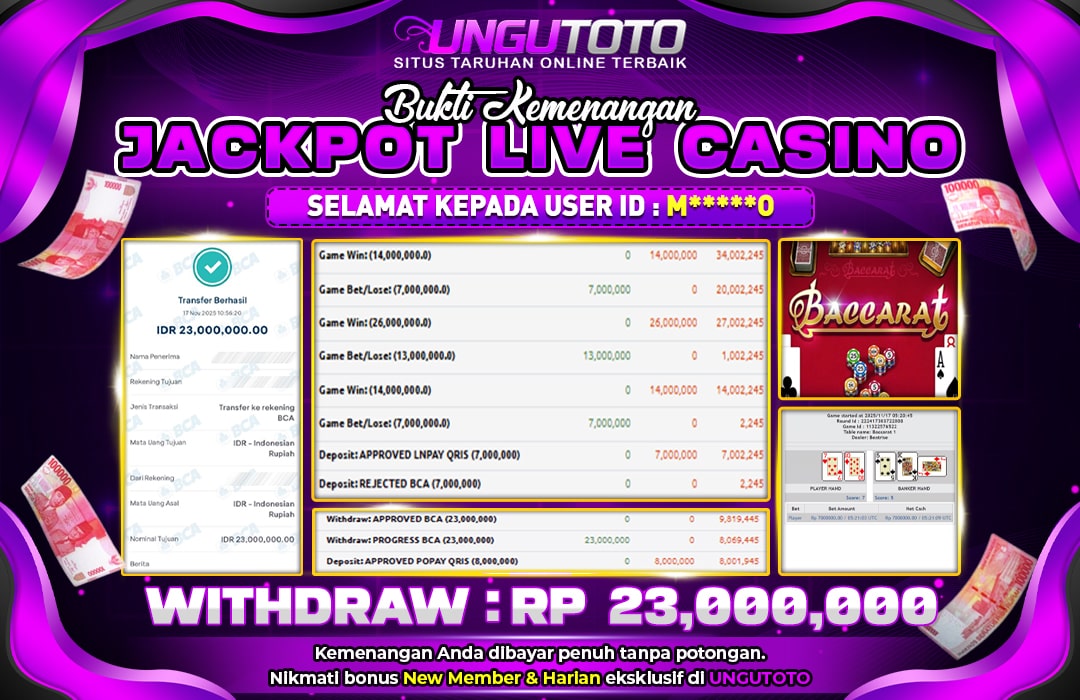 Bergabunglah dengan UNGUTOTO hanya dengan deposit minimal 5.000 rupiah. Kami menyediakan berbagai metode pembayaran seperti transfer bank, e-wallet, dan QRIS, sehingga Anda bisa melakukan transaksi dengan mudah. Proses penarikan juga sangat cepat, dengan minimal withdraw hanya 50.000 rupiah, tanpa biaya tambahan.