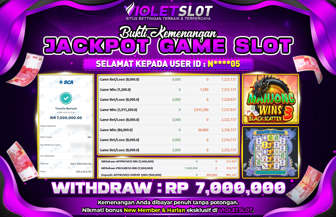 Selamat Kepada Member UNGUTOTO N⭑⭑***⭑05 Telah Jackpot Di MAHJONG WINS 3 BLACK SCATTER
