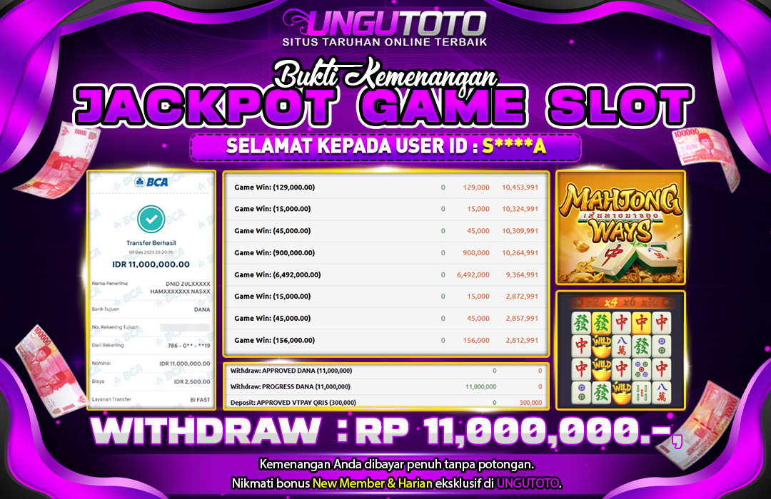 Selamat Kepada Member UNGUTOTO S****A Telah Jackpot Di MAHJONG WAYS