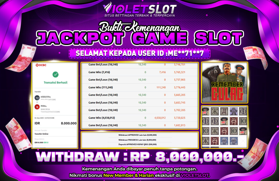 Selamat Kepada Member UNGUTOTO ME******7 Telah Jackpot Di REMEMBER GULAG