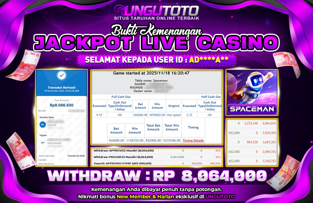 Selamat Kepada Member UNGUTOTO AD⭑⭑***A⭑⭑ Telah Jackpot Di SPACEMAN