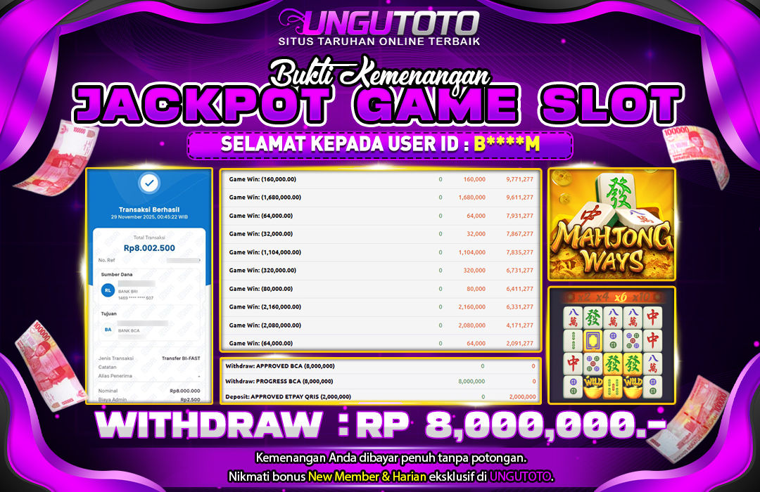 Sudah banyak yang buktiin sendiri—UNGUTOTO konsisten bayar semua kemenangan member, berapapun nominalnya. Transparan, aman, dan dijamin tuntas. 💯🔒