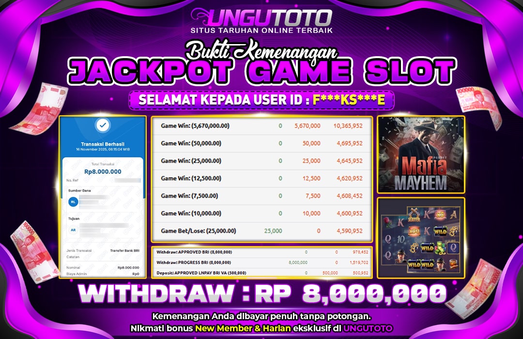 Bergabunglah dengan UNGUTOTO hanya dengan deposit minimal 5.000 rupiah. Kami menyediakan berbagai metode pembayaran seperti transfer bank, e-wallet, dan QRIS, sehingga Anda bisa melakukan transaksi dengan mudah. Proses penarikan juga sangat cepat, dengan minimal withdraw hanya 50.000 rupiah, tanpa biaya tambahan.