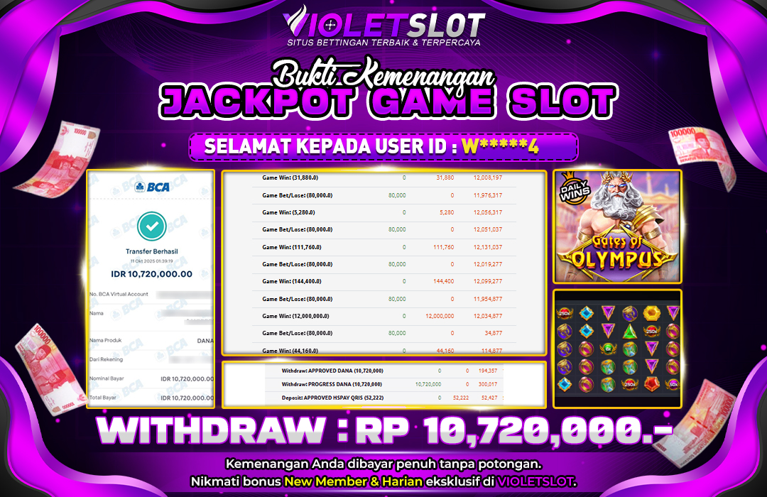 Selamat Kepada Member UNGUTOTO W⭑⭑�***��⭑4 Telah Jackpot Di GATES OF OLYMPUS