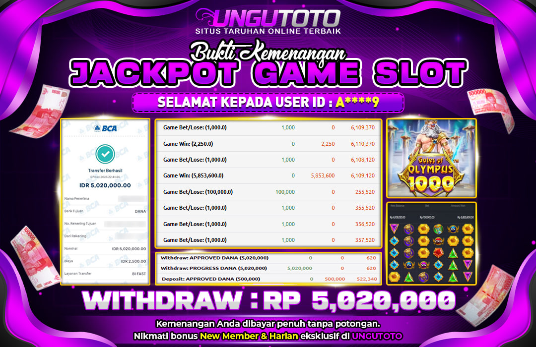 Bergabunglah dengan UNGUTOTO hanya dengan deposit minimal 5.000 rupiah. Kami menyediakan berbagai metode pembayaran seperti transfer bank, e-wallet, dan QRIS, sehingga Anda bisa melakukan transaksi dengan mudah. Proses penarikan juga sangat cepat, dengan minimal withdraw hanya 50.000 rupiah, tanpa biaya tambahan.
