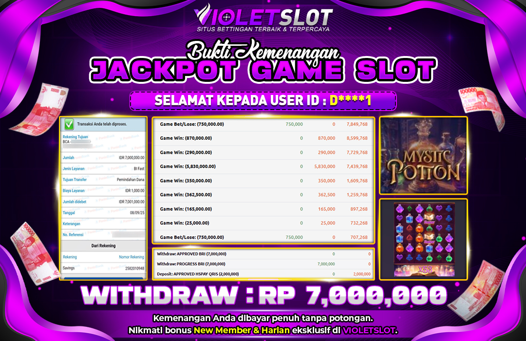 Selamat Kepada Member UNGUTOTO D****1 Telah Jackpot Di MYSTIC POTION