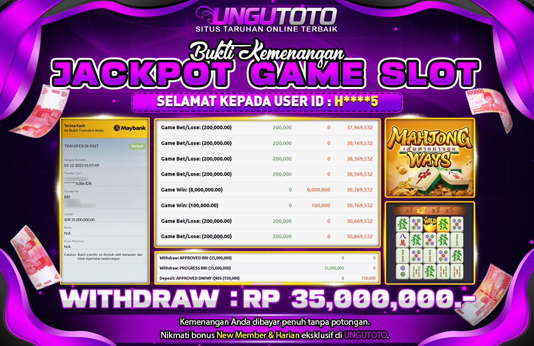 Ya cuma di UNGUTOTO, tempat paling aman dan terpercaya buat para pecinta MAHJONG WINS 3. Mulai dari layanan responsif, sistem yang fair, sampai pencairan yang tuntas tanpa drama.