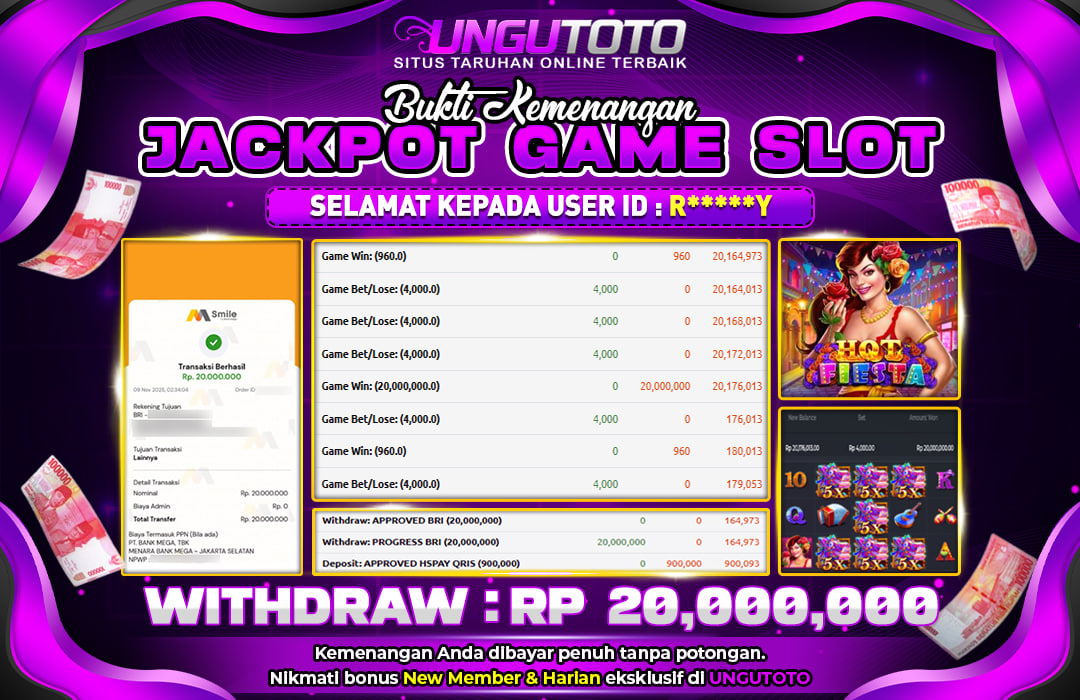 Selamat Kepada Member UNGUTOTO R⭑�***�⭑Y Telah Jackpot Di HOT FIESTA