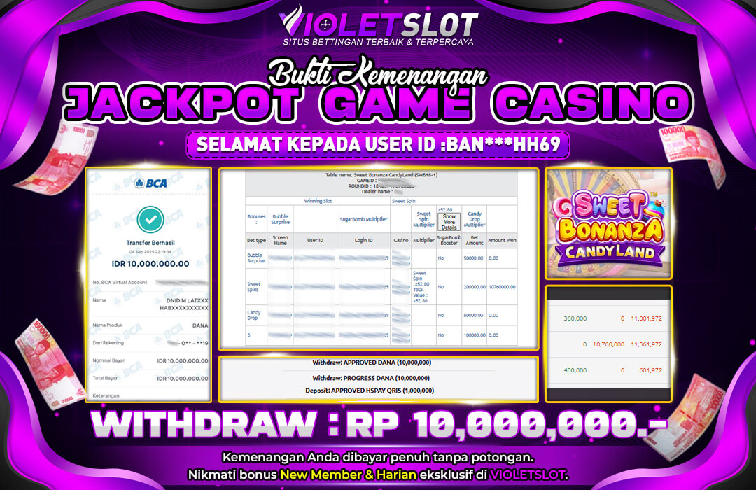 Selamat Kepada Member UNGUTOTO BAN****H69 Telah Jackpot Di LIVE CASINO SWEET CANDYLAND