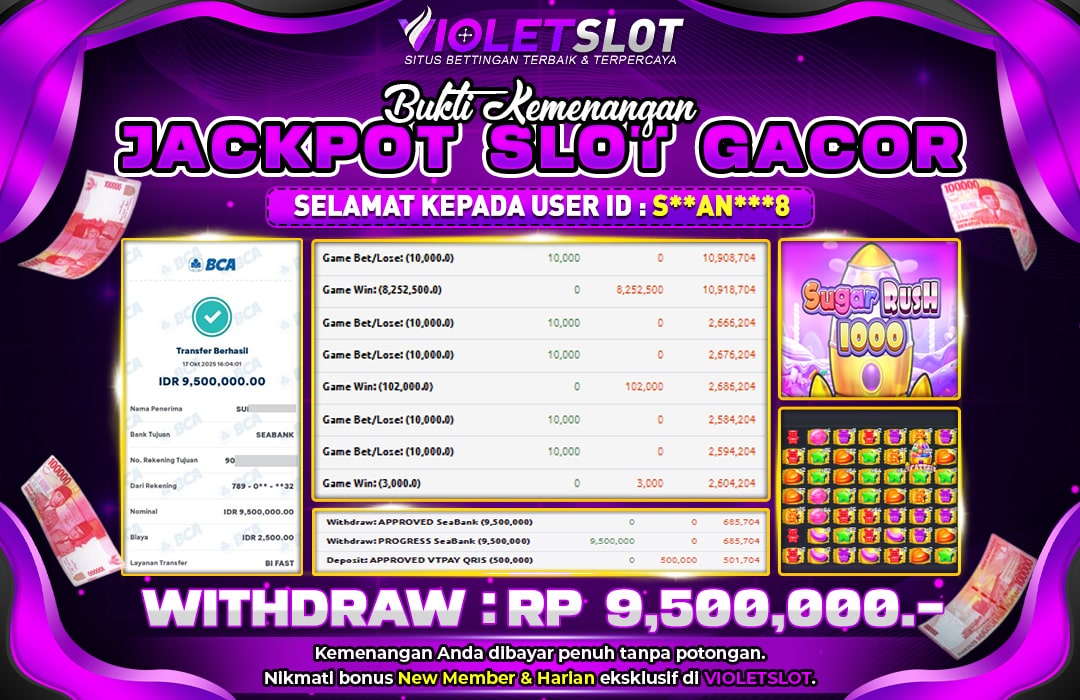 Selamat Kepada Member UNGUTOTO S**A****8 Telah Jackpot Di SUGAR RUSH 1000