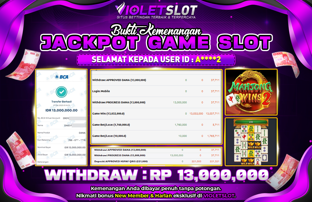 Selamat Kepada Member UNGUTOTO A⭑⭑�***�⭑⭑2 Telah Jackpot Di GAME SLOT PRAGMATIC MAHJONG WINS 2