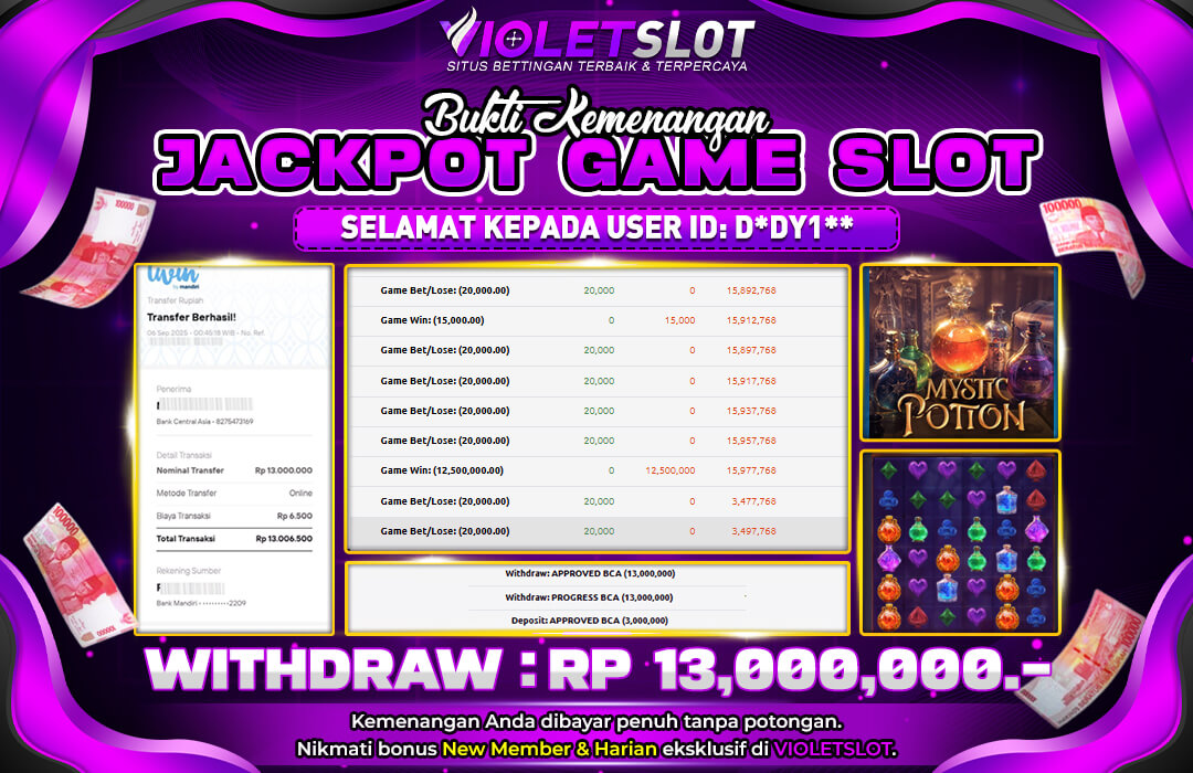 Selamat Kepada Member UNGUTOTO S⭑⭑⭑***⭑⭑123 Telah Jackpot Di MYSTIC POTION