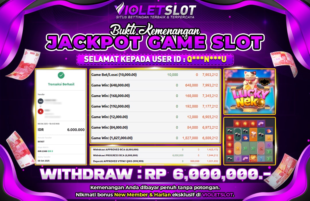 Selamat Kepada Member UNGUTOTO Q*******U Telah Jackpot Di LUCKY NEKO