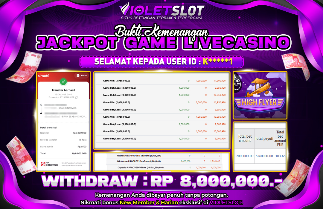 Selamat Kepada Member UNGUTOTO K⭑⭑⭑�***��⭑⭑1 Telah Jackpot Di LIVE CASINO- PRAGMATICPLAY- HIGHT FLYER