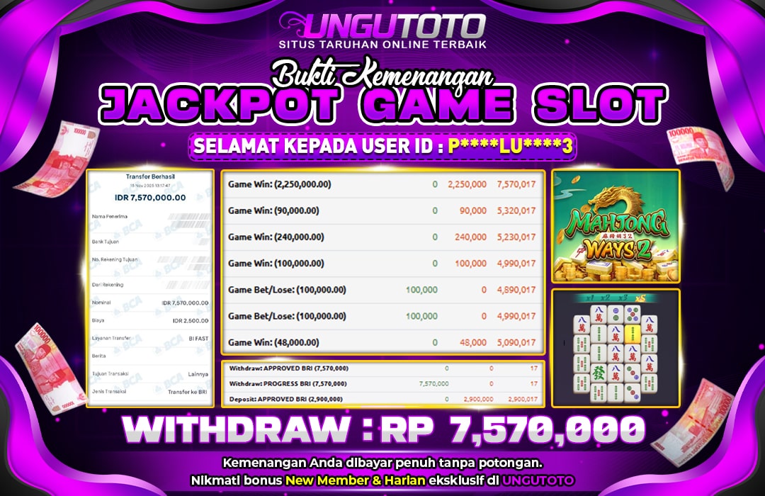 Ya cuma di UNGUTOTO, tempat paling aman dan terpercaya buat para pecinta MAHJONG WAYS 2. Mulai dari layanan responsif, sistem yang fair, sampai pencairan yang tuntas tanpa drama.
