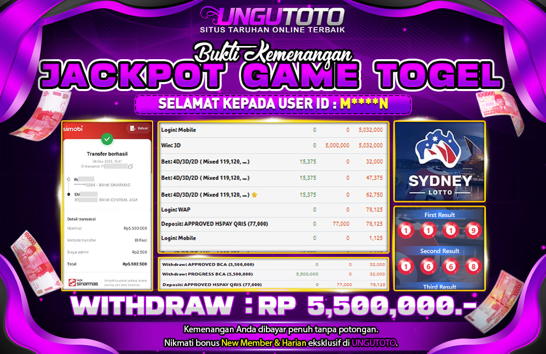 Selamat Kepada Member UNGUTOTO M⭑�***�⭑N Telah Jackpot Di SYDNEY LOTTO