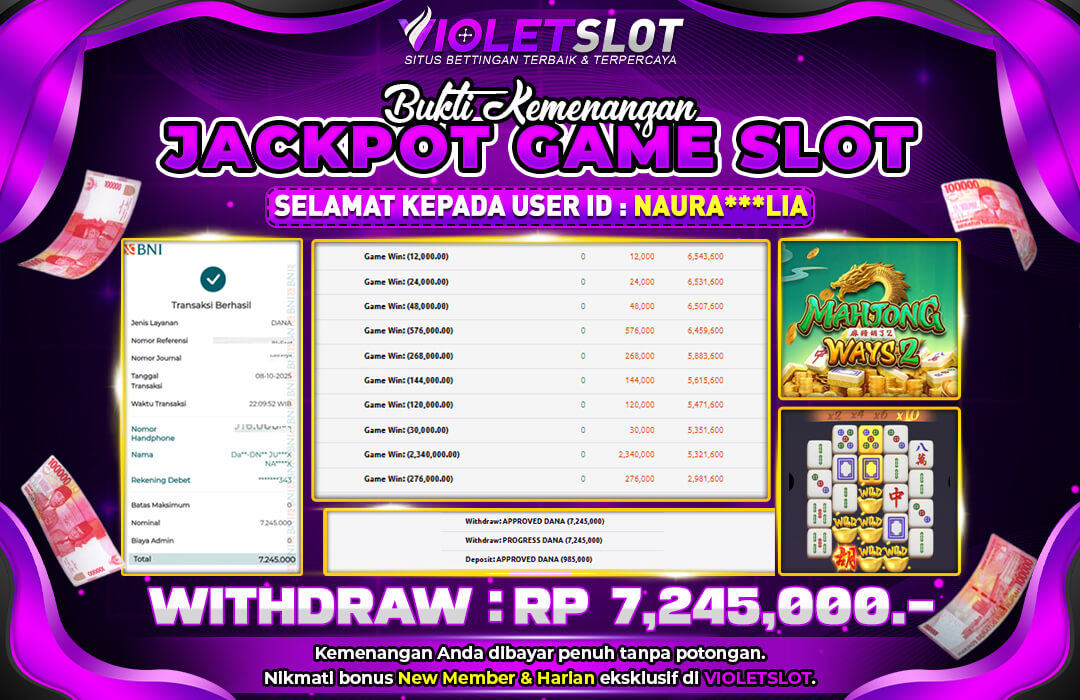 Selamat Kepada Member UNGUTOTO NAURA⭑***⭑LIA Telah Jackpot Di MAHJONG WAYS 2