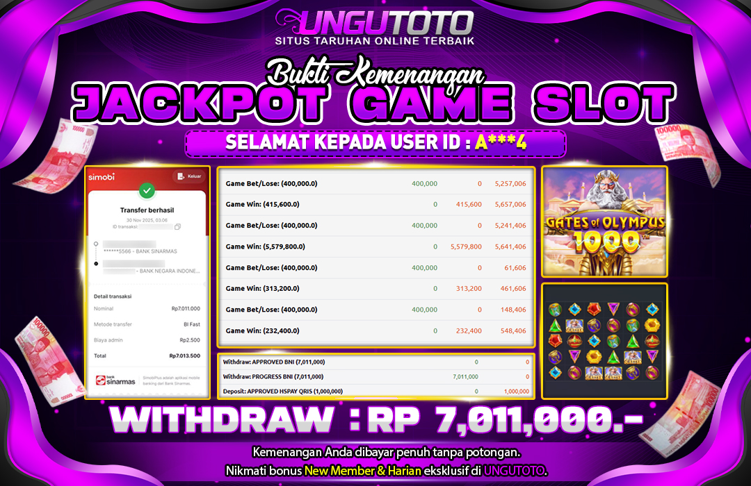 Bergabunglah dengan UNGUTOTO hanya dengan deposit minimal 5.000 rupiah. Kami menyediakan berbagai metode pembayaran seperti transfer bank, e-wallet, dan QRIS, sehingga Anda bisa melakukan transaksi dengan mudah. Proses penarikan juga sangat cepat, dengan minimal withdraw hanya 50.000 rupiah, tanpa biaya tambahan.