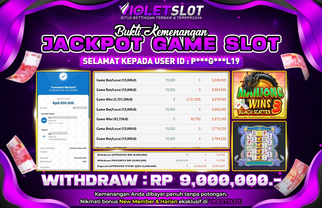 Selamat Kepada Member UNGUTOTO P***G***L19 Telah Jackpot Di MAHJONG WINS 3