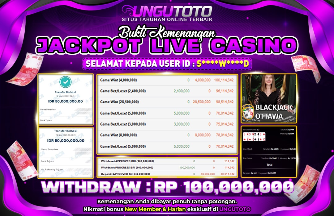 Selamat Kepada Member UNGUTOTO S*********D Telah Jackpot Di BLACKJACK OTTAWA