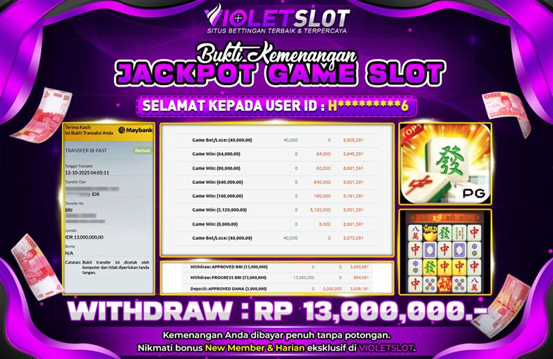 Selamat Kepada Member UNGUTOTO JA⭑⭑***⭑⭑7 Telah Jackpot Di MAHJONG WAYS