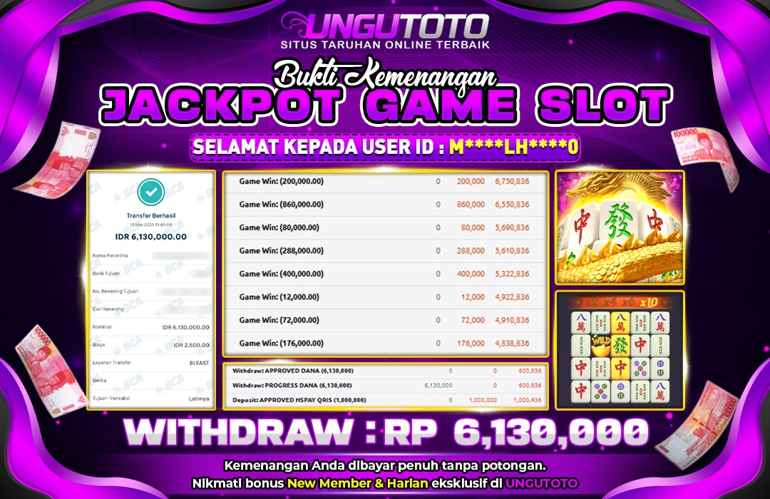Selamat Kepada Member UNGUTOTO M**********0 Telah Jackpot Di MAHJONG WAYS