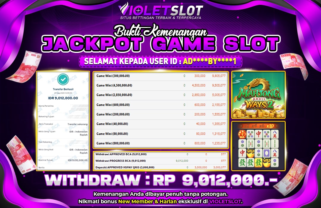 Selamat Kepada Member UNGUTOTO A**** Telah Jackpot Di MAHJONG WAYS