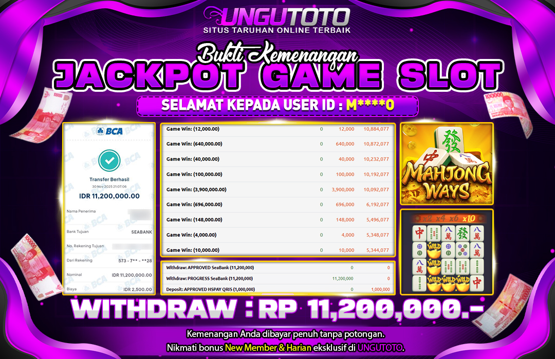 Selamat Kepada Member UNGUTOTO M****O Telah Jackpot Di MAHJONG WAYS