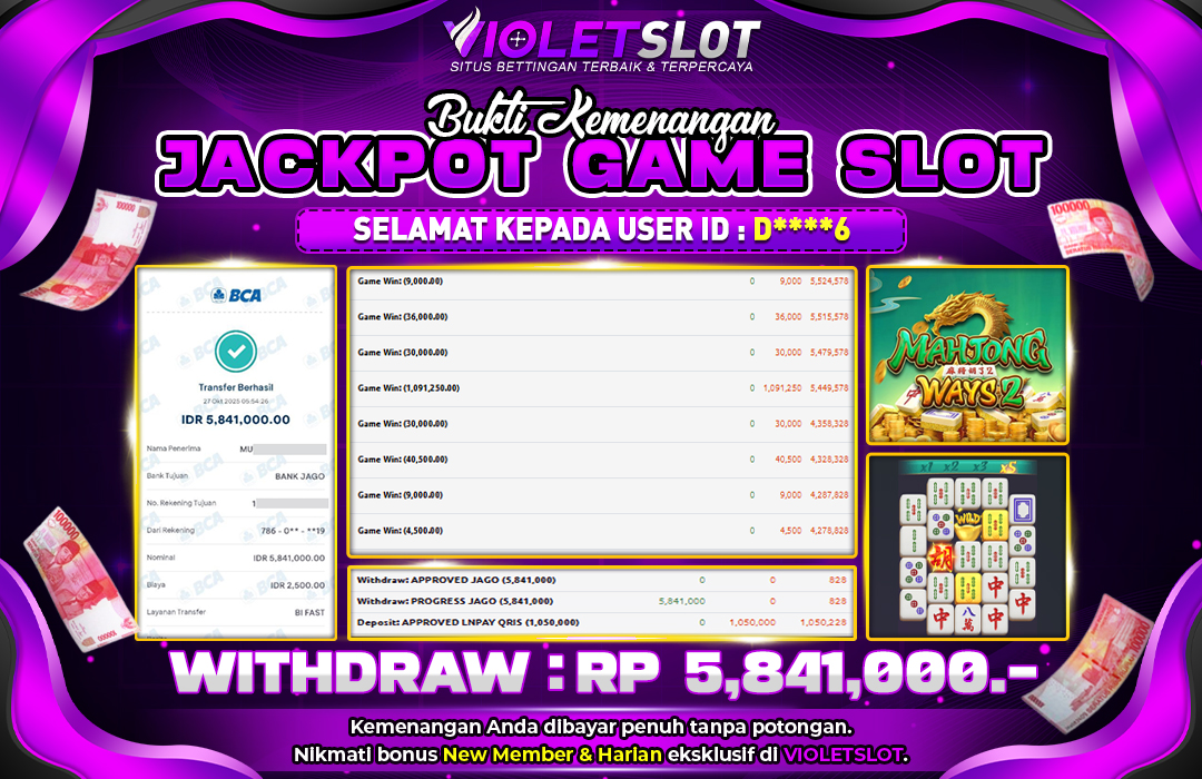 Selamat Kepada Member UNGUTOTO D⭑⭑�***�⭑⭑6 Telah Jackpot Di GAME SLOT MAHJONG WAYS 2