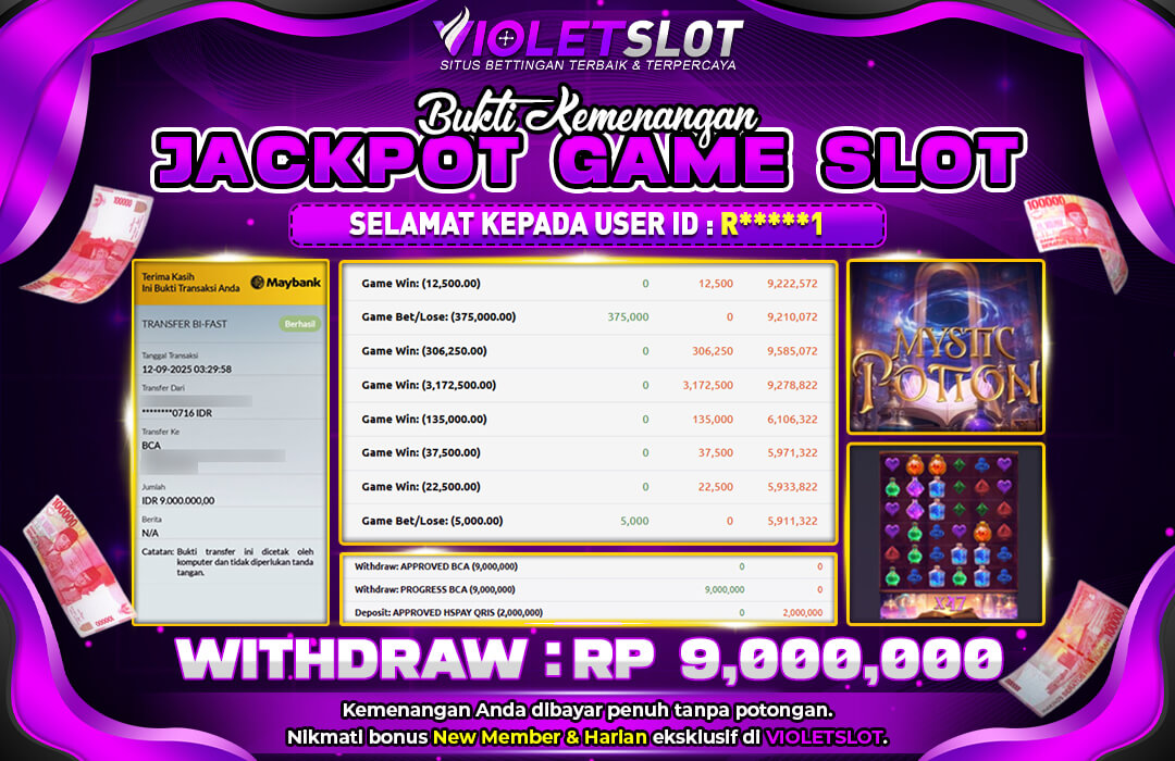 Selamat Kepada Member UNGUTOTO R******1 Telah Jackpot Di MYSTIC POTION