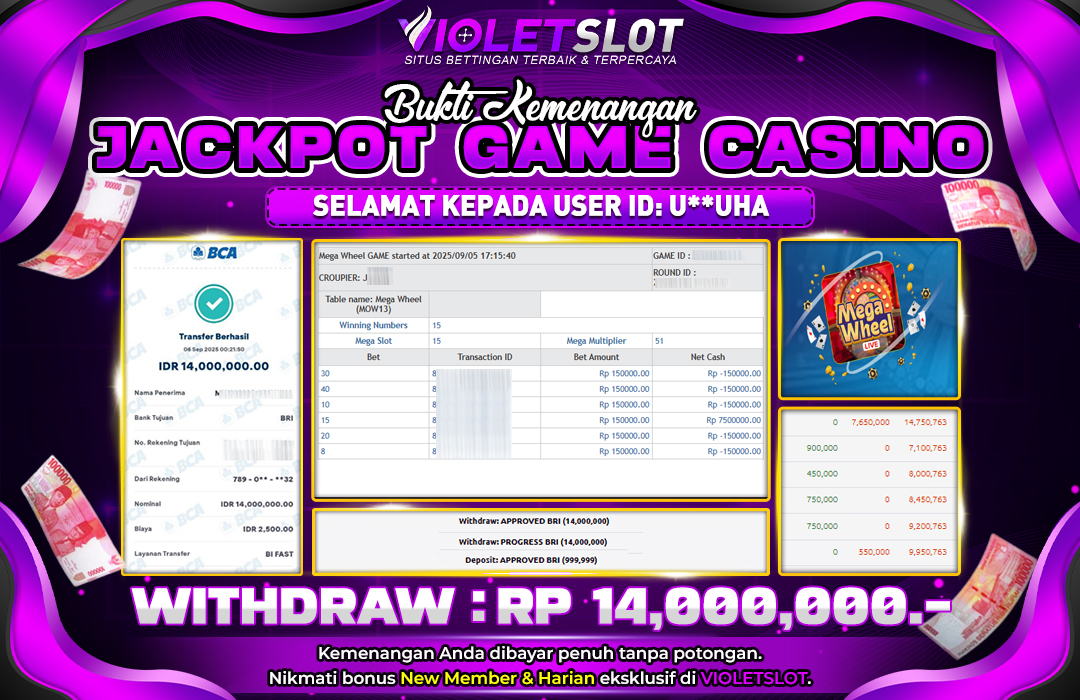 Selamat Kepada Member UNGUTOTO U****A Telah Jackpot Di MEGA WHELL