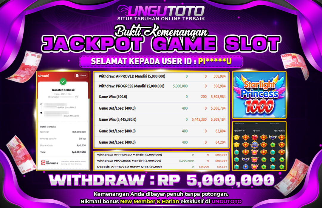 Selamat Kepada Member UNGUTOTO PI⭑⭑***⭑⭑U Telah Jackpot Di STARLIGHT PRINCES 1000