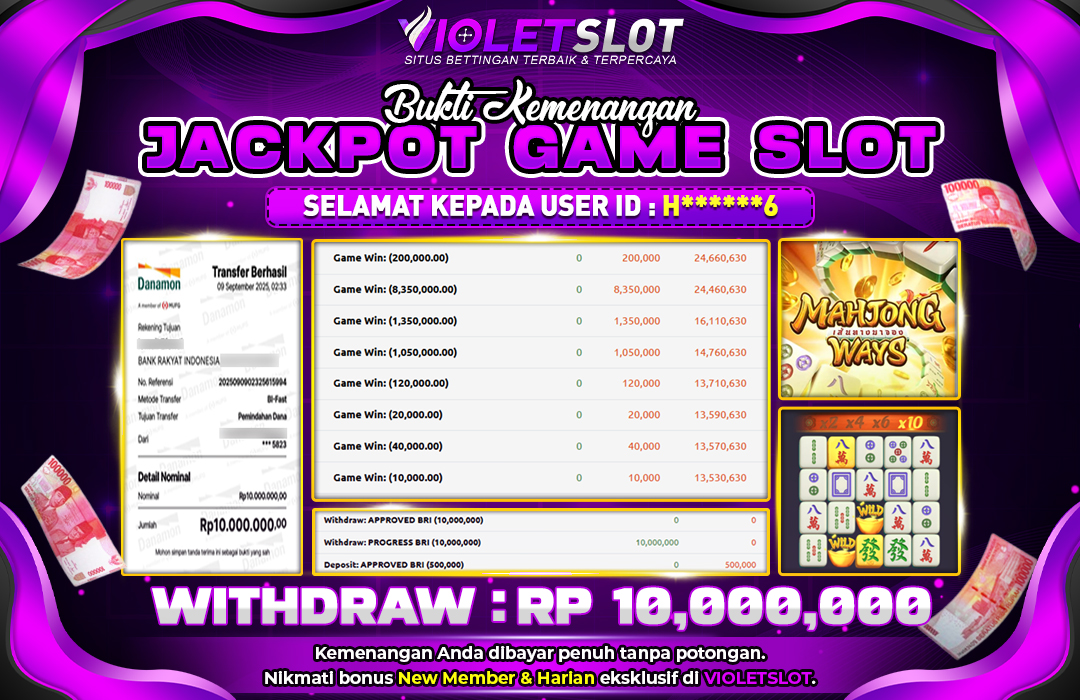 Selamat Kepada Member UNGUTOTO H*****6 Telah Jackpot Di MAHJONG WAYS