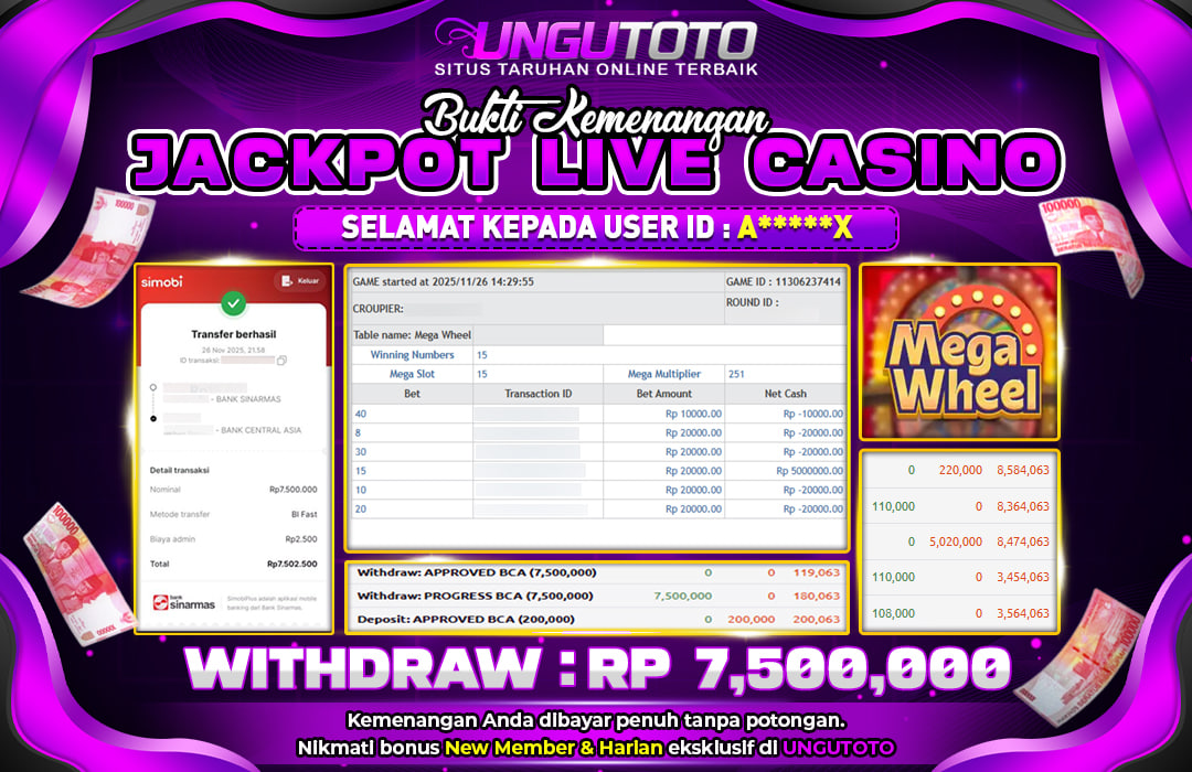 Selamat Kepada Member UNGUTOTO A⭑⭑�***��⭑X Telah Jackpot Di MEGA WHEEL