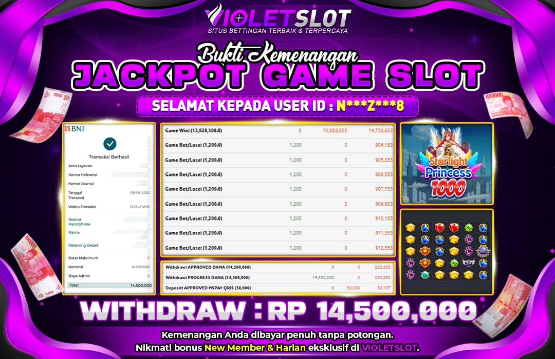Selamat Kepada Member UNGUTOTO N*******8 Telah Jackpot Di STARLIGHT PRINCESS 1000