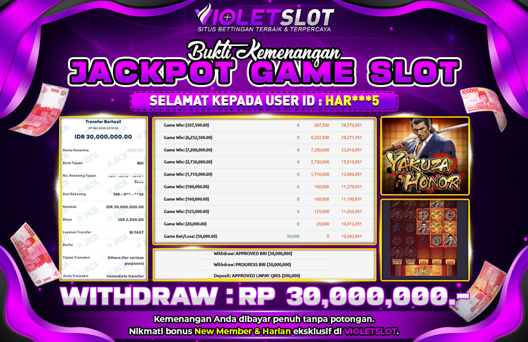 Selamat Kepada Member UNGUTOTO HAR⭑***⭑5 Telah Jackpot Di YAKUZZA HONOR