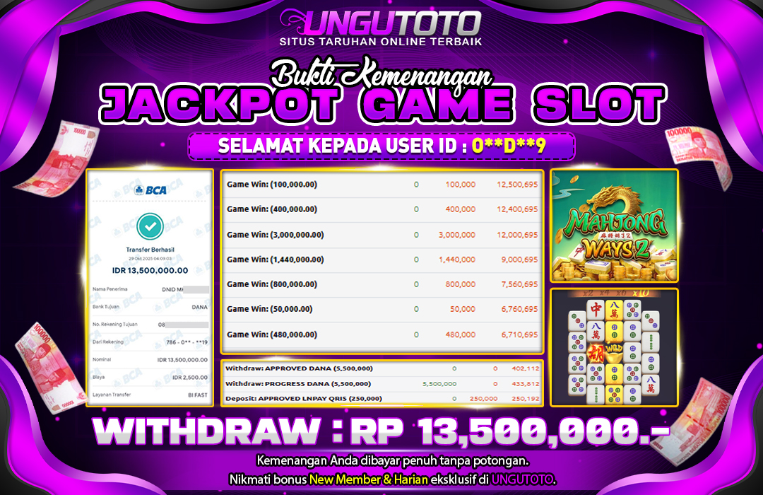 Selamat Kepada Member UNGUTOTO O⭑⭑�***�⭑⭑9 Telah Jackpot Di GAME SLOT MAHJONG WAYS 2